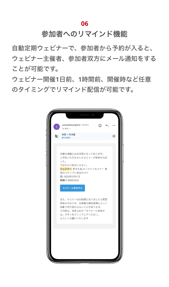 その他の場合には、当社は一定の予告期間を設けて、お客様に変更内容を通知するものとし、お客様が当該予告期間経過後にオートウェビナーJPを利用した場合には、当該変更に同意したものと扱われます。